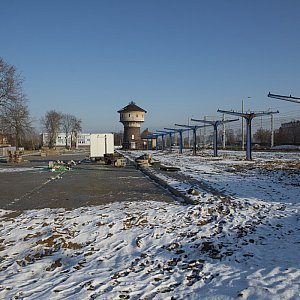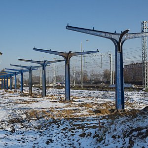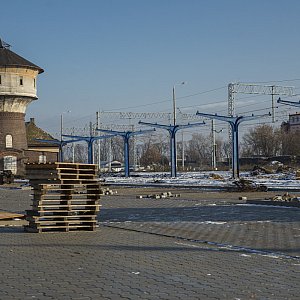 Dziesięć stalowych filarów zabytkowej wiaty z peronu kościańskiego dworca ustawiono przy kolejowej wieży ciśnień od strony torowiska. Montaż podpór poprzedziły prace ziemne związane z wykopem pod fundamenty, zbrojeniem i betonowaniem. Kolejny etap przewiduje montaż zadaszenia, które będzie chronić przed deszczem blisko sto jednośladów.