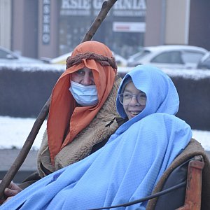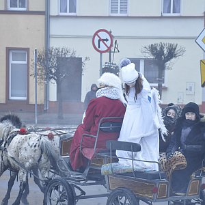 Wśród kolędników nie zabrakło burmistrz Małgorzaty Adamczak. Były też zwierzęta. Poza końmi ciągnącymi powozy w jednej z bryczek jechał również pies, pojawiła się także mała owieczka.