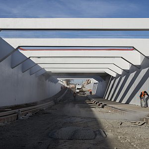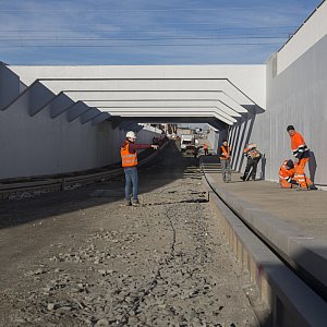 Pomimo zimowej pory roboty przy budowie tunelu pod torami na ul. Gostyńskiej postępują w szybkim tempie. Pod wiaduktem, po jednej stronie budowanej jezdni, gotowa jest już betonowa nawierzchnia pod chodnik. Na wylanie betonu czeka teraz uzbrojone podłoże po drugiej stronie drogi.
