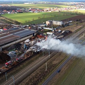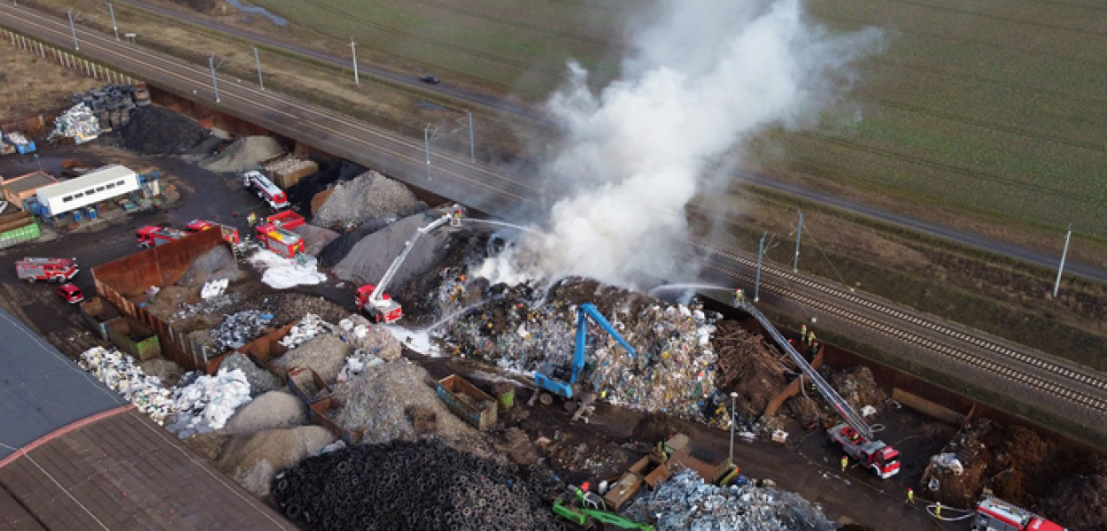 A zapaliły się przetworzone już odpady takich surowców jak plastiki i elementy gumowe, stąd duże zadymienie.