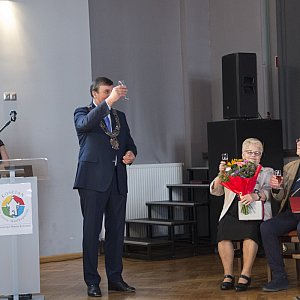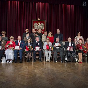 Uroczystość z udziałem włodarza miasta, urzędniczek z USC w Kościanie - Eweliny Pikosz i Joanny Majsner oraz oczywiście zacnych jubilatów i ich rodzin odbyła się w południe w Kościańskim Ośrodku Kultury. Medale przyznane przez Prezydenta Rzeczypospolitej Polskiej Medalem za Długoletnie Pożycie Małżeńskie burmistrz wręcza na podstawie wcześniej złożonego stosownego wniosku do Urzędu Stanu Cywilnego w Kościanie.
