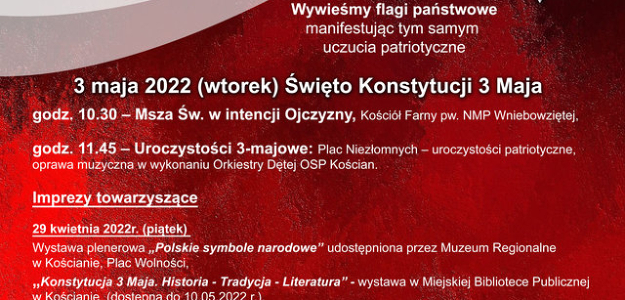 Od piątku czynna jest na Placu Wolności wystawa plenerowa przygotowana przez Muzeum Regionalne, a dotycząca symboli narodowych. Wystawę okolicznościową przygotowała także Miejska Biblioteka Publiczna, a dostępna jest w jej siedzibie. Z kolei wieczorem, w ramach Dyskusyjnego Klubu Filmowego krytyk filmowy Wiesław Kot zaprasza na wspomnienia polskich filmów z okresu PRL-u. To oczywiście nawiązanie do Święta Pracy hucznie obchodzonego w poprzednim ustroju.