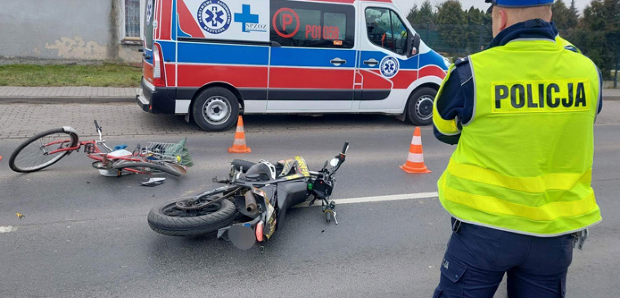 Zdarzenie miało miejsce w piątek około godziny 14.30 na ulicy Łąkowej w Kościanie. 67-letni mieszkaniec Kościana kierując rowerem wykonał nieprawidłowy manewr włączenia się do ruchu wyjeżdżając wprost pod nadjeżdżający skuter marki Derbi, którym kierował 17-letni mieszkaniec gminy Krzywiń.