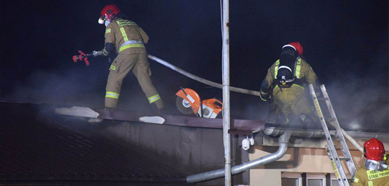 - Na miejscu stwierdzono, że pożarem objęta jest konstrukcja dachu budynku warsztatowego. Strażacy natychmiast podali prąd wody z zewnątrz oraz jeden wewnątrz obiektu na część konstrukcji dachu. Po opanowaniu płomieni wyniesiono na zewnątrz spalone elementy ze środka budynku, dodatkowo przelano je wodą - informuje Dawid Kryś, oficer prasowy KP PSP w Kościanie.