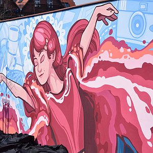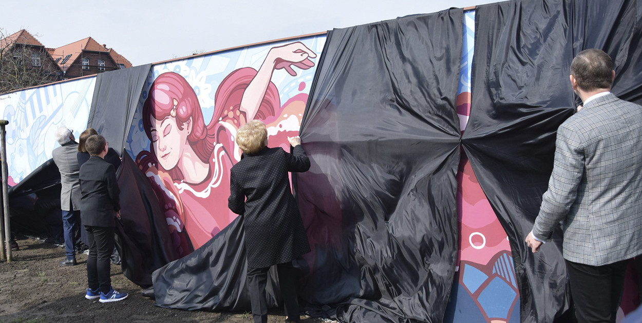Na boisku Zespołu szkół im. Marii Konopnickiej w Kościanie odsłonięto w czwartek imponujący mural przedstawiający tancerkę otoczoną przedmiotami kojarzącymi się z kościańską placówką.