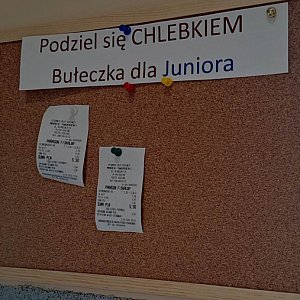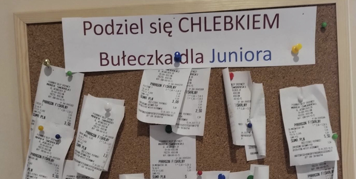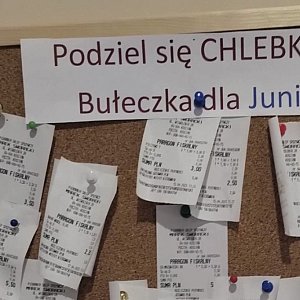 Akcja została niedawno poszerzona o możliwość zakupu chleba czy bułek w "Piekarni Marek Sworacki" znajdującej się na ul. Wyzwolenia, a więc w pobliżu Szkoły Podstawowej nr 3. – Tę inicjatywę nazwaliśmy "Bułka dla Juniora", gdyż tworząc ją myśleliśmy przede wszystkim o uczniach. Zdarza się, że dzieci przychodzą do szkoły bez śniadania. Albo dostają wprawdzie skromne kanapki, a miałyby ochotę na bułkę mleczną. Tymczasem ich mama może sobie pozwolić ledwie na zakup chleba – wyjaśnia Katarzyna Kaźmierczak z grupy "Pomagacze" i inicjatorka akcji. – Dzięki tablicy z paragonami dzieci mogą otrzymać bułkę. Zresztą nie tylko ją, bo darczyńca może opłacić dowolny towar w piekarni – drożdżówkę, jogurt czy inny przysmak.
