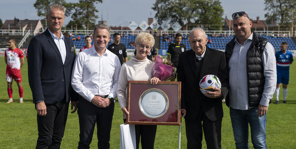 Podczas uroczystości zasłużonemu działaczowi i ikonie kościańskiej piłki towarzyszyła małżonka Janina. Pamiątkową paterę, będącą podziękowaniem od zarządu i zawodników Obry za 75 lat działalności na rzecz klubu, Tadeusz Borowiak odebrał z rąk burmistrza Kościana Sławomira Kaczmarka, prezesa klubu Artura Lajsznera i prezesa WZPN Pawła Wojtali. Niezwykle miłym akcentem było wspólne zdjęcie uhonorowanego działacza z zawodnikami Obry.