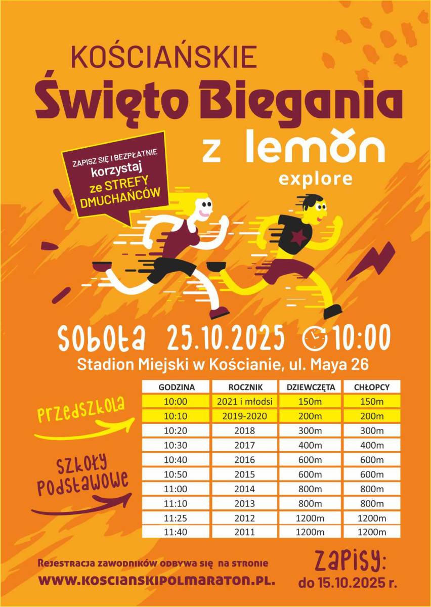 Kościańskie Święto Biegania w tym roku po raz pierwszy firmuje marka Lemon Explore. To polska marka odzieży sportowej i outdoorowej dla dzieci i młodzieży należąca do grupy CDRL.