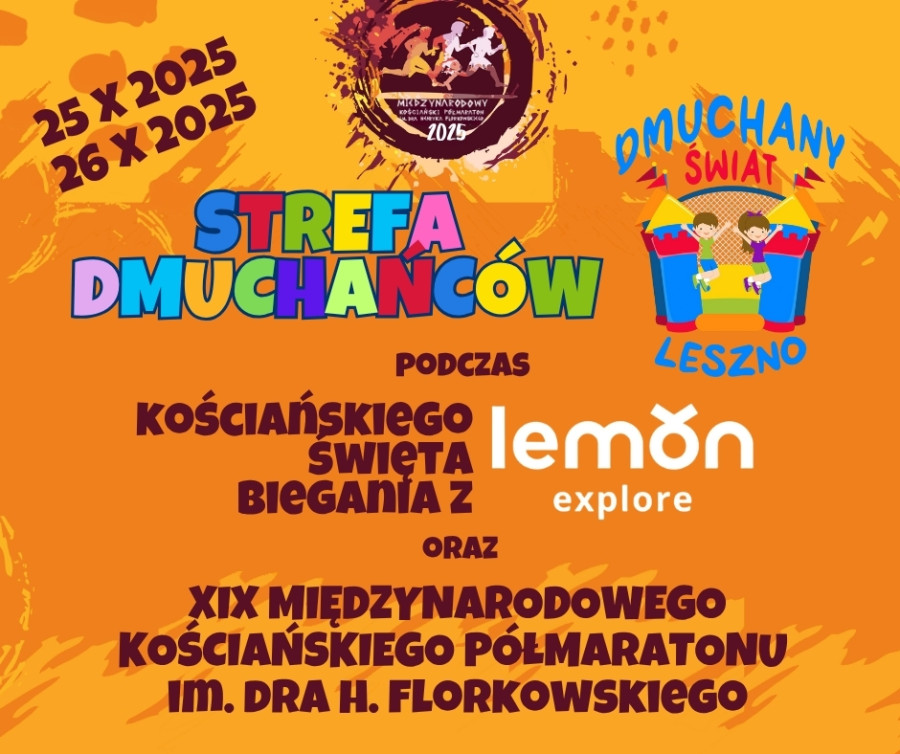 Najmłodsi już w sobotę, podczas Święta Biegania z Lemon Explore oraz w niedzielę będą mogli wyszaleć się na Strefie Dmuchańców umiejscowionej na boisku trawiastym naprzeciwko stadionu przy ul. Maya. Strefa w sobotę będzie dostępna w godz. 10.00-13.00. Uczestnicy biegów dziecięcych (z opaską) będą mieli wejścia za darmo. Z kolei w niedzielę dmuchańce będą dostępne w godz. 12.00-15.00. Wejście będzie możliwe za symboliczną opłatą, z której dochód zostanie przeznaczony na cele charytatywne.