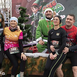 Po tych biegach na starcie zaczęli gromadzić się już dorośli zawodnicy. Bieg miał dystans 5 km, a oddzielną rywalizację mieli także zawodnicy nordic walking. Na linii startu nie mogło zabraknąć św. Mikołaja. Rozgrzewkę prowadziła natomiast Mikołajka. Sami zawodnicy także zadbali o stroje podkreślające mikołajowy charakter biegu. Wśród zawodników w oczy rzucała się grupa piłkarzy z Promienia Krzywiń. Ci zawodnicy biegli w jednej grupie.