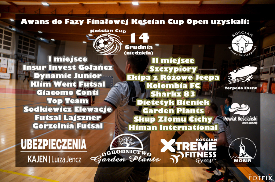 Przed nami finałowa odsłona II edycji Kościan Cup Open. W niedzielę, 14 grudnia hala sportowa przy Zespole Szkół Ponadpodstawowych im. F. Ratajczaka w Kościanie stanie się areną futsalowych emocji.