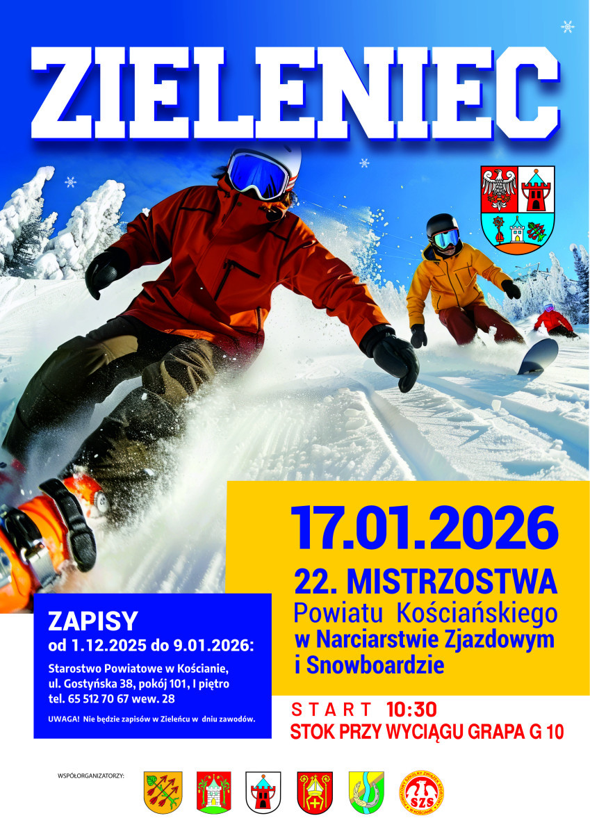 Mistrzostwa Powiatu Kościańskiego w Narciarstwie Zjazdowym i Snowboardzie w Zieleńcu odbędą się w tym roku już 17 stycznia. Z kolei termin zapisów mija 9 stycznia.