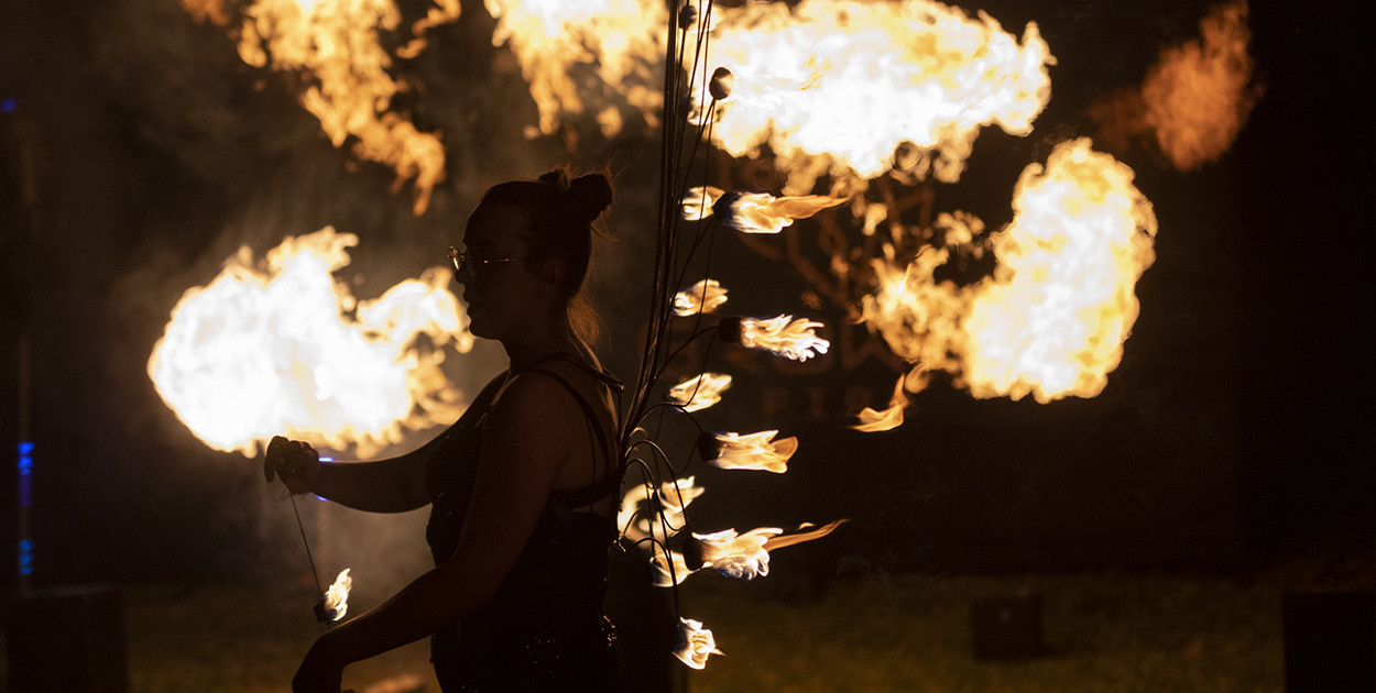 Potem rozpoczął się kulminacyjny i niezwykle widowiskowy punkt programu. Na polanie pod wzgórzem grupa GrowUp Fire zaprezentowała ogniowe show. Ten teatr ognia trwał około 20 minut, a występ bardzo spodobał się widzom, którzy show oglądali z dużym zaciekawieniem. Po występie na chętnych widzów czekała jeszcze niespodzianka. Mogli mianowicie wykonać sobie zdjęcie z artystami trzymającymi w rękach zapalone akcesoria. Atrakcja wzbudziła duże zainteresowanie, szczególnie wśród najmłodszych, a do zdjęcia ustawiła się długa kolejka.