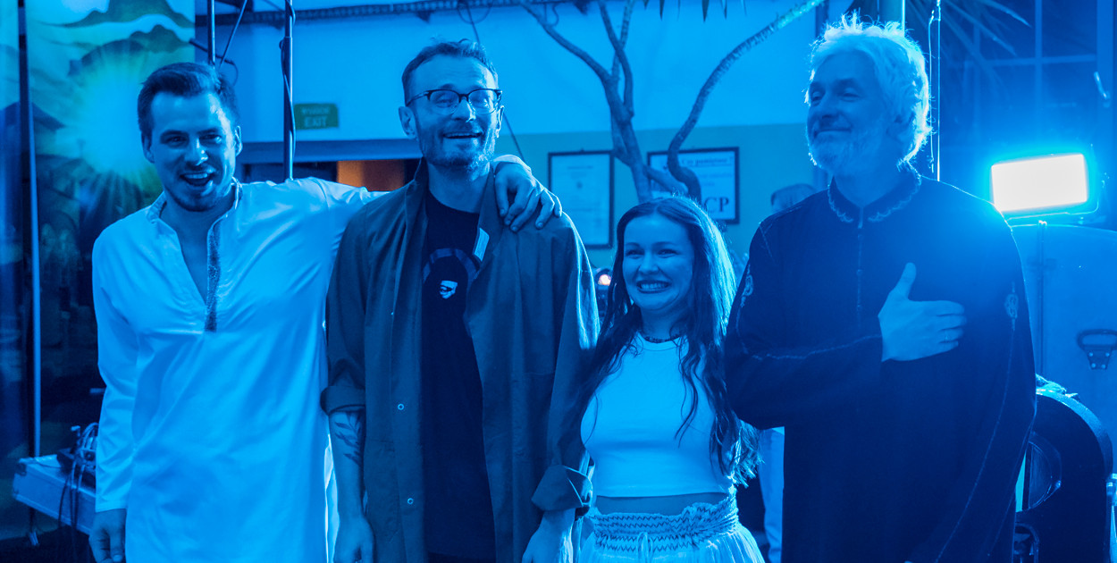 Wprowadzeni w ten sposób w doskonały nastrój słuchacze byli już gotowi na kolejny, najważniejszy punkt programu. A był nim koncert duetu Black Noice tworzonego przez Jacka Hałasa i Jakuba Szwarca z gościnnym udziałem Patryka Piłasiewicza i Agaty Skrzypek. Trzeba zacząć od tego, że Jacek Hałas jest jednym z nielicznych ekspertów w Polsce muzyki tradycyjnej. Kilka lat temu zaprosił do współpracy kościańskiego perkusistę Jakuba Szwarca i w ten sposób powstał niesamowity duet Black Noice łączący tradycję ze współczesnością. Ten muzyczny projekt specjalnie na potrzeby występu w Gorzelni został poszerzony o kontrabasistę i wokalistkę, ale także reżyserkę koncertów.