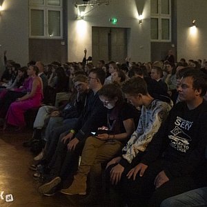 Następnie przyszedł czas na głównego gościa, czyli Jacka Mezo Mejera. Pochodzący z Poznania raper podczas swojej prezentacji opowiadał dużo o swojej muzyce, ale także o sporcie, który zajmuje ważne miejsce w jego życiu. Mówił m.in. o udziale w maratonach, zdobywaniu górskich szczytów, ale także o kibicowaniu Lechowi Poznań. Jednym słowem o tym, jak ważna jest w życiu motywacja, która pcha nas do działania.