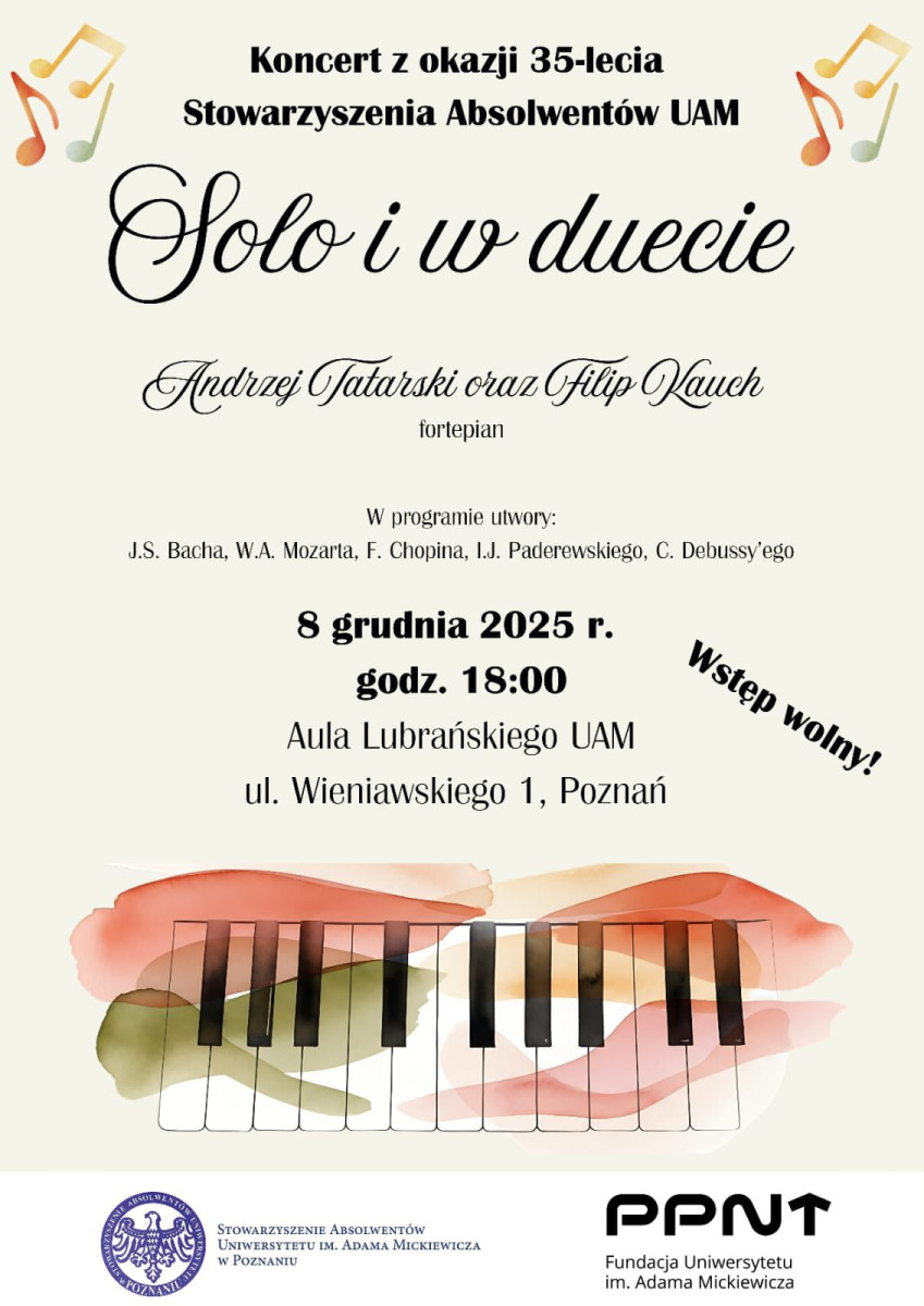 Drugi to koncert jubileuszowy z okazji 35-lecia Stowarzyszenie Absolwentów UAM zatytułowany „Solo i w duecie”. Ten koncert odbędzie się w Auli Lubrańskiego przy ul. Wieniawskiego 1 w Poznaniu. Tutaj Filip wystąpi solo oraz z profesorem Andrzejem Tatarskim. Będzie to koncert tylko tych dwóch muzyków. Publiczność usłyszy utwory m.in. utwory: J. S. Bacha, W. A. Mozarta, F. Chopina, I. J. Paderewskiego, H. Wieniawskiego, C. Debussy’ego, C. Saint-Saënsa, A. Dvoraka.