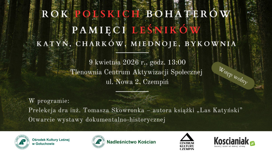Do powiatu kościańskiego zawitała wystawa poświęcona polskim leśnikom zamordowanym w Katyniu, Charkowie, Miednoje i Bykowni. Towarzyszy jej promocja książki „Las Katyński” autorstwa dr. inż. Tomasza Skowronka.