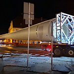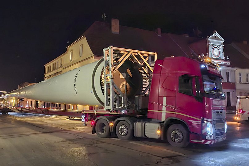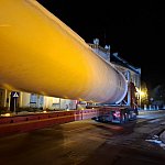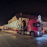 Przez Śmigiel w tym tygodniu w nocnej porze przetacza się ogromny transport. To gigantyczne elementy turbiny wiatrowej. Część centralna konstrukcji wraz ze skrzydłami przejeżdżała przez centrum Śmigla minionej nocy.