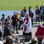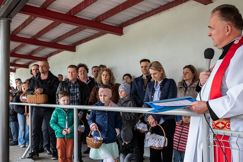 Bardzo oryginalny charakter miało popołudniowe święcenie potraw zorganizowane przez kościańską farę. Święconkę zorganizowano na Stadionie Miejskim, a konkretnie na trybunach.