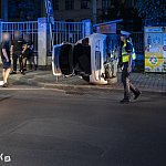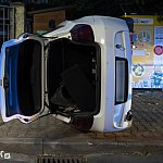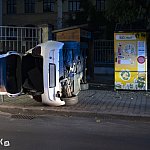 Do niecodziennego zdarzenia drogowego doszło w niedzielę wieczorem. Młody kierowca BMW stracił panowanie nad pojazdem i przewrócił się bokiem na chodnik nieomal taranując drewnianą budkę, w której znajduje się Jadłodzielnia.