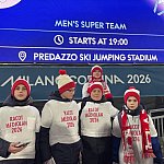 Trwa konkurs duetów mężczyzn na dużej skoczni w Predacco. Polskę reprezentują dwukrotny medalista olimpijski Kacper Tomasiak i Paweł Wąsek. Czy Biało-Czerwoni sięgną po kolejny krążek w naszej narodowej zimowej konkurencji? Na pewno pomogą im w tym kibice z Racotu.