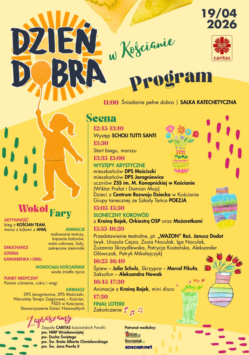 Organizatorzy kościańskiego Dnia Dobra wracają do wiosennego terminu i na ten wyjątkowy dzień pełen atrakcji zapraszają już w niedzielę, 19 kwietnia. Program jak co roku jest bardzo bogaty.