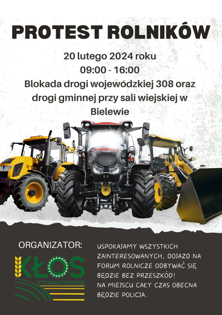 W naszym powiecie nie są na szczęście planowane protesty w pobliżu S5. Na terenie powiatu kościańskiego zaplanowany został jedynie strajk na drodze 308 na odcinku Lubiń-Bielewo. Miejsce to zostało wybrane w związku z Forum Rolniczym Powiatu Kościańskiego, które zaplanowano od godz. 10.00 w świetlicy wiejskiej w Bielewie.
