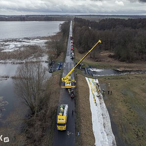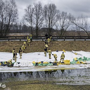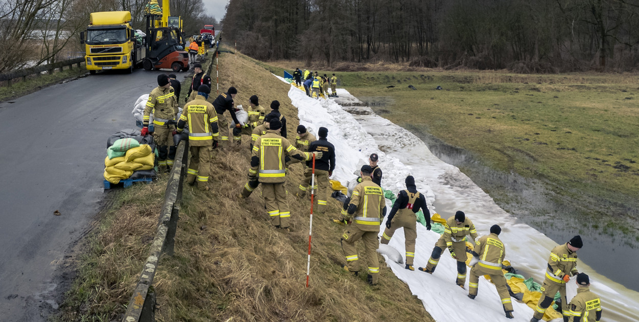 – Wał przesiąka od dołu, pod drogą. Dlatego w tym miejscu znajdują się inspektorzy nadzoru wodnego z Wód Polskich, którzy monitorują prace wskazując, w których dokładnie miejscach powinniśmy układać worki. Najprawdopodobniej wzmocnień będą wymagały także inne miejsca. Praca przebiega bez większych utrudnień, ale jest czasochłonna. Dzisiaj działania potrwają do godzin wieczornych, być może będą kontynuowane jutro. Pamiętajmy, że czynnik ludzki ma swoje ograniczenia. Przychodzi po prostu zmęczenie od pracy fizycznej. Dlatego załoga po kilku godzinach zostanie z pewnością wymieniona – tłumaczył obecny na miejscu Dawid Kryś, oficer prasowy KP PSP Kościan.