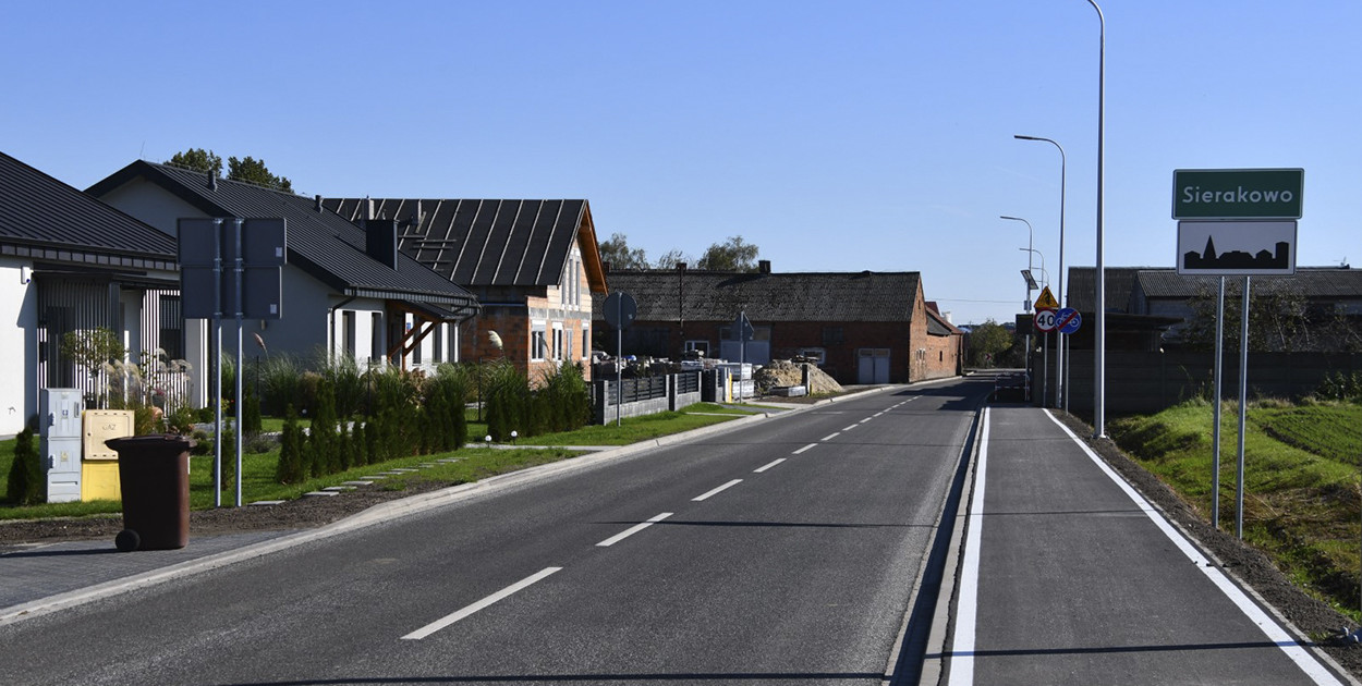 Rozpoczęta wiosną tego roku inwestycja była podzielona na dwa odcinki. Dłuższy – ponad 800-metrowy – odcinek od końca wiaduktu nad drogą S5 przez Sierakowo do skrzyżowania z byłą drogą krajową nr 5 ma jezdnię o szerokości 6 metrów. Wybudowano nowe chodniki o szerokości 2 metrów. W miejscowości wbudowano i przebudowano oświetlenie uliczne. W ramach inwestycji powstała zatoka parkingowa.