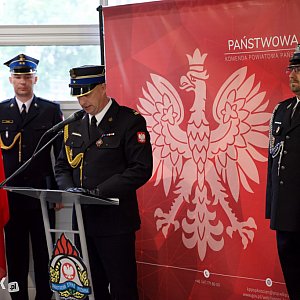 W dalszej części uroczyście wręczono awanse, odznaczenia, wyróżnienia i nagrody. Ostatnim punktem były wystąpienia gości zawierające podziękowania i życzenia. Sekretarz stanu w MSWiA Wiesław Szczepański podkreślał m.in. dużą rolę w dobrego wyposażenia w niesieniu skutecznej pomocy. Zapewnił, że trwają prace na poziomie ministerstwa, by nakłady na modernizację straży pożarnej, ale też wynagrodzenia, zostały zwiększone.