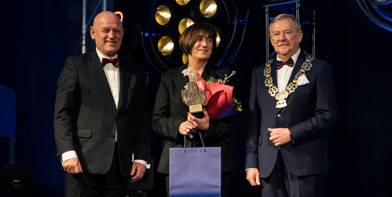 Po słowach wójta organizatorzy przeszli do najważniejszego punktu wieczoru, czyli wręczenia honorowych tytułów „Zasłużony dla Gminy Kościan”. W tym roku wręczono dwie statuetki. Pierwszą z nich otrzymała Jolanta Nowicka. To nauczycielka matematyki i informatyki w Zespole Szkół w Starych Oborzyskach, od 16 lat prezes Stowarzyszenia Centrum Rozwoju Gminy Kościan. W tym czasie dla środowiska gminy Kościan zrealizowała kilkadziesiąt różnych projektów. Drugą statuetkę przyznano klubowi sportowemu. Tak się akurat złożyło, że otrzymał ją klub ze Starych Oborzysk, czyli oczywiście LZS Junatrans. To klub o 60-letniej tradycji, który swoją pracą, sportowym duchem i konsekwentnym rozwojem stał się jednym z najbardziej rozpoznawalnych klubów w regionie. Statuetkę z rąk wójta odebrali prezes klubu Bartłomiej Nowicki, wiceprezes Marcin Adamczak i przedstawicielka zarządu Justyna Stachowiak.
