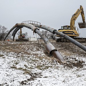 Można powiedzieć, że to historyczny moment. Po ponad 30 latach z podmiejskiego krajobrazu Kościana zniknął charakterystyczny łuk nad kanałem Obry, którym płynęła woda surowa do SUW przy ul. Jesionowej. Teraz powstała nowa instalacja, a skorodowane rury zostały usunięte.