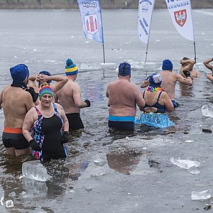 Kilkudziesięciu morsów z pięciu grup zebrało się w niedzielę, 25 stycznia na plaży przy krzywińskim jeziorze. Po krótkiej rozgrzewce grupami wchodzili do wody, wyrąbanym w lodzie korytarzem. Mróz ściął bowiem mocno jezioro. To poświęcenie jest oczywiście związane z 34.Finałem Wielkiej Orkiestry Świątecznej Pomocy.