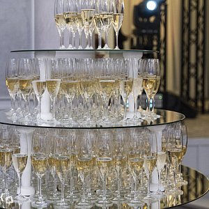 Po emocjonującym tańcu nastąpiło wzniesienie toastu, a następnie jeszcze jeden tradycyjny dla tej szkoły moment, czyli przypięcie pamiątkowych przywieszek każdemu z uczniów. Potem przyszedł czas na wspólne fotografie klasowe, przy czym były tutaj ich dwie odsłony. Dziewczęta, które tańczyły poloneza były bowiem ubrane w białe bluzki i czarne, długie spódnice. Po spożytej kolacji, dziewczyny przebrały się w suknie balowe i stanęły jeszcze raz do zdjęcia. Dodajmy, że na korytarzu rozłożono z kolei ściankę do zdjęć w oskarowym stylu. Ścianka była dostępna dla uczniów przez całą imprezę.