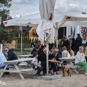 Na głównej plaży spacerowało, ale też wypoczywało sporo osób. Czynna była jedna budka z lodami, a amatorów tego przysmaku nie brakowało. Wiele osób przechadzało się z psami. Pojawili się też rowerzyści, a nawet surferzy z deską w wodzie. Dzieci grały w piłkę, baraszkowały na urządzeniach do zabawy.