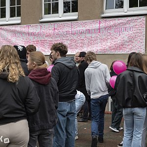 Z tego powodu uczestnicy marszu trzymali w dłoniach różowe baloniki. Rozdawano także różowe plakietki. Wśród uczestników wydarzenia byli uczniowie Liceum Ogólnokształcącego im. Oskara Kolberga w Kościanie, Zespołu Szkół Ponadpodstawowych im. Franciszka Ratajczaka w Kościanie, Zespołu Szkół Ponadpodstawowych im. Jana Kasprowicza w Nietążkowie, a także grupki uczniów wraz z nauczycielami z kościańskich podstawówek. W zgromadzeniu uczestniczyły ponadto amazonki ze stowarzyszenia „Hipolita” oraz samorządowcy miejscy i powiatowi.