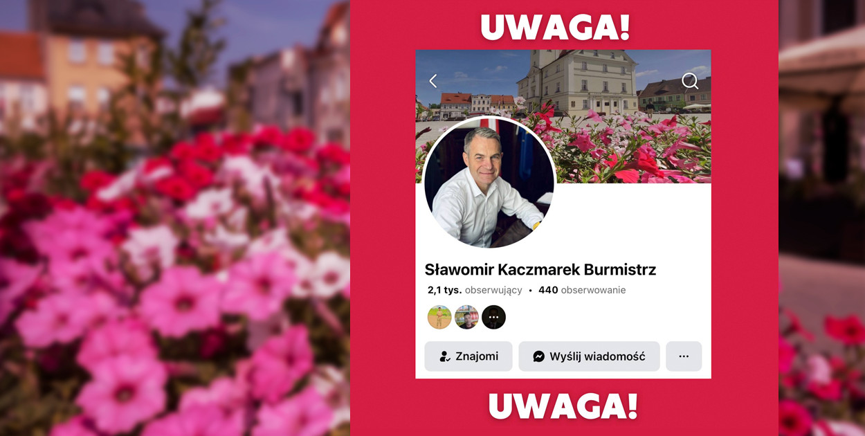 Uwaga! Burmistrz Sławomir Kaczmarek ostrzega przed utworzeniem fałszywego profilu na Facebooku na jego dane. Prosi za naszym pośrednictwem, by nie przyjmować zaproszeń z tego konta.