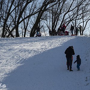 Przed południem na górce tłumów jeszcze nie było, więc swobodnie można było zjeżdżać. Coraz więcej samochodów na drodze dojazdowej pojawiało się natomiast około południa. Były to raczej małe dzieci do około 10-12 lat lub jeszcze mniejsze szkraby wraz z rodzicami. To właśnie młodsze pociechy zjeżdżały w towarzystwie dorosłych.