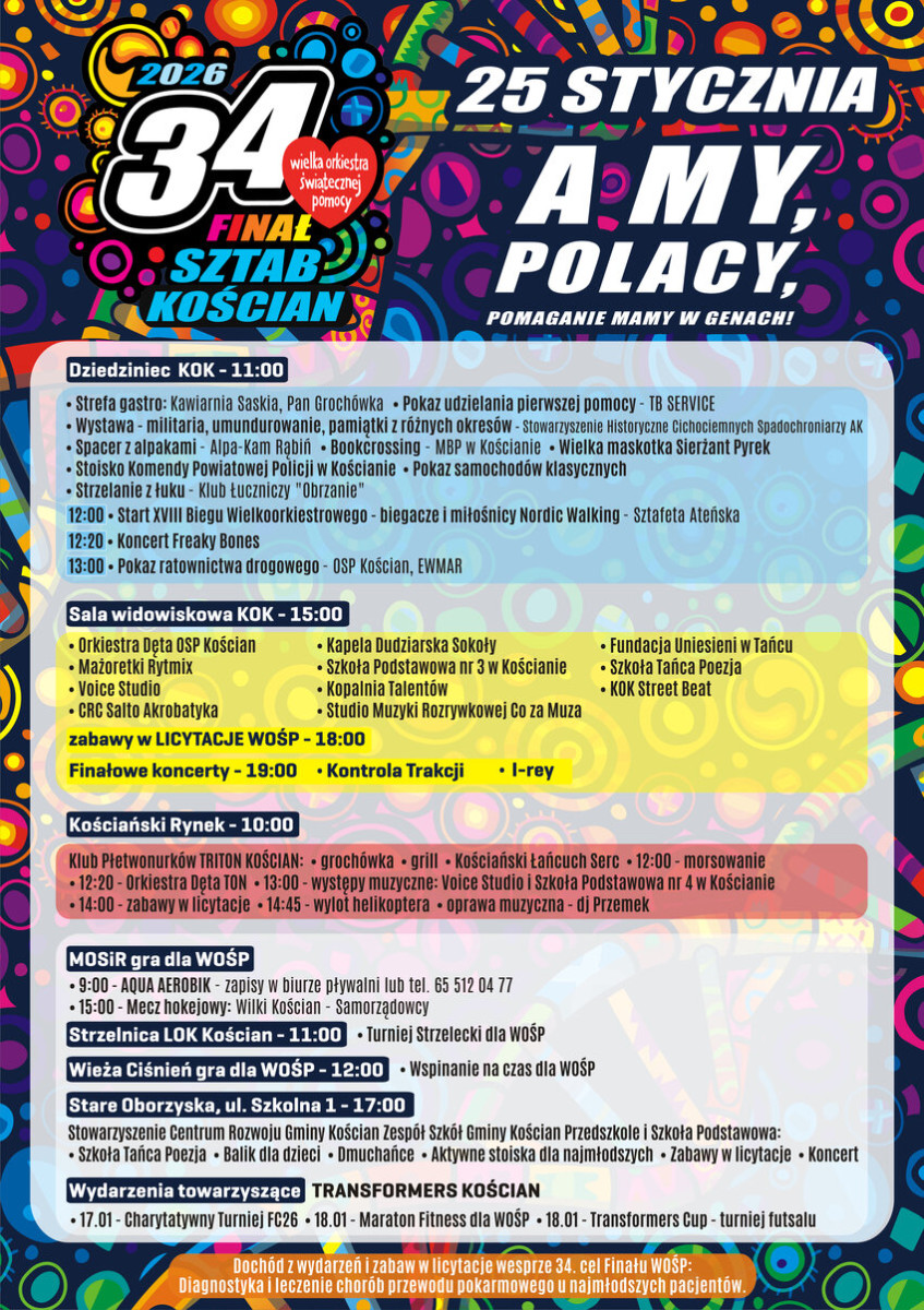 Już w najbliższą niedzielę, 25 stycznia odbędzie się kolejny Finał Wielkiej Orkiestry Świątecznej Pomocy. W Kościanie na ten dzień zaplanowano różne wydarzenia, które odbywać będą się w różnych częściach miasta, a nawet poza nim, od rana do wieczora.