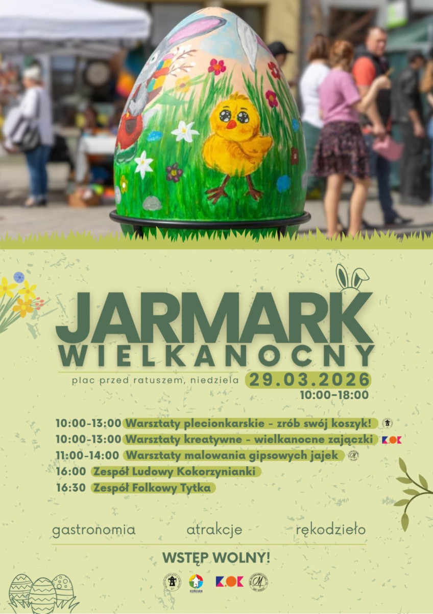 W Niedzielę Palmową samorząd Kościana zaprasza na Rynek, na którym przez cały dzień będzie się odbywał jarmark z okazji zbliżającej się Wielkanocy. Będzie mnóstwo straganów, ale także innych atrakcji.