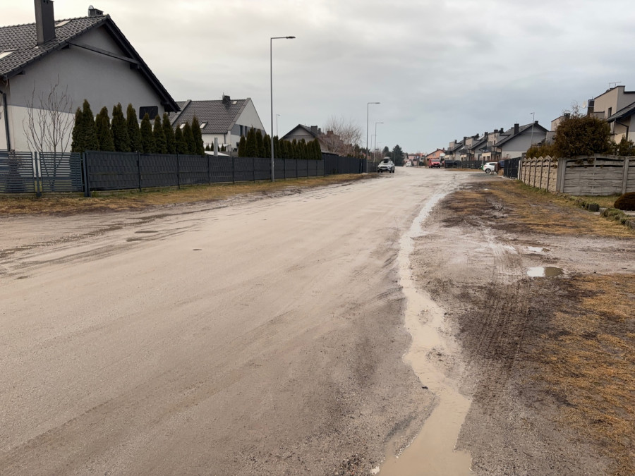 Obecna droga gruntowa, mimo corocznego ubijania drogi, jest pełna wybojów i kolein. Do tego panuje na niej dość duży ruch, więc w porze suchej mocno się kurzy, co skutecznie utrudnia życie mieszkańcom. Z kolei gdy pada deszcz, można utonąć w błocie, szczególnie na poboczach. Jednakże jeszcze w tym roku to się zmieni.