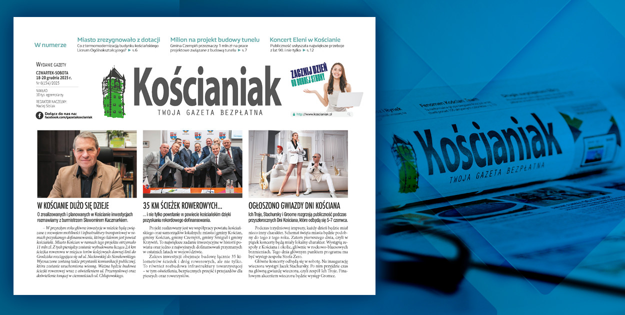 Dodajmy, że ten numer jest dla nas szczególnie wyjątkowy, gdyż mija właśnie 15 lat od pierwszego wydania gazety „Kościaniak”. Zapraszamy do lektury!