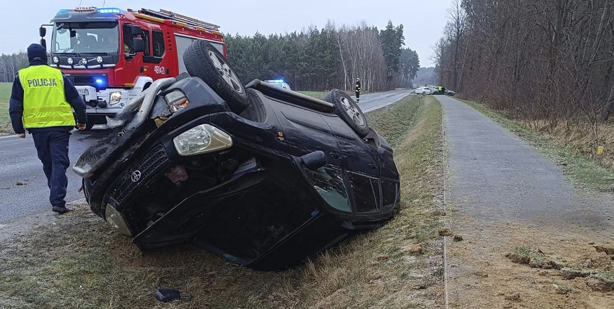 Do wypadku doszło około godz. 8.30. Toyota dachowała i zatrzymała się w rowie. Autem kierował 65-letni mieszkaniec powiatu wschowskiego, który z auta wydostał się sam. Z kolei pasażerce, 55-letniej kobiecie pomogli wydostać się świadkowie zdarzenia.