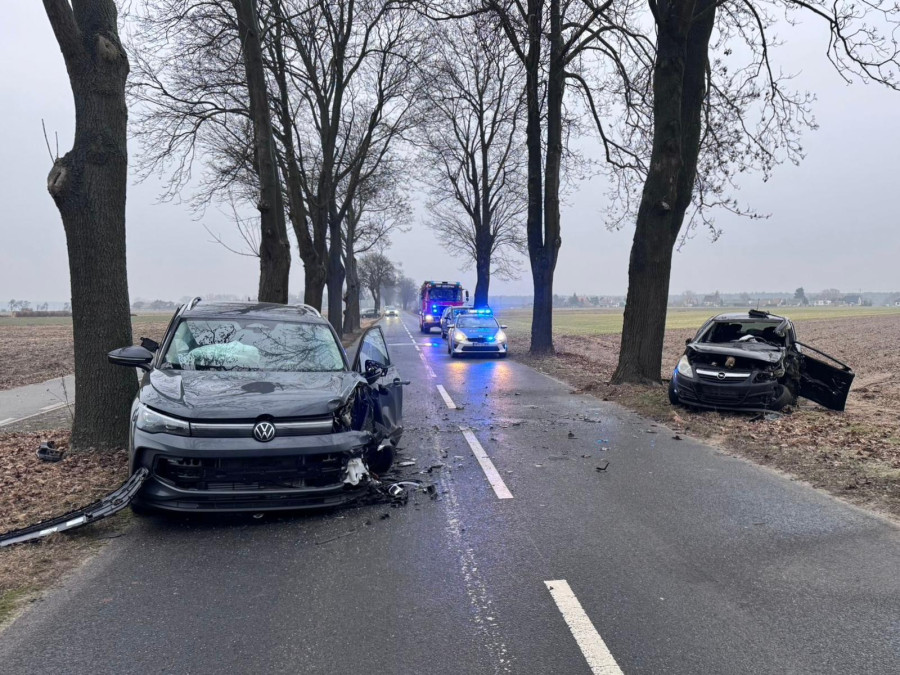 Do groźnego wypadku doszło po godz. 14.00 w niedzielę, 25 stycznia. Jak ustaliła policja, 38-letnia mieszkanka gminy Osieczna, kierując Oplem, jechała w kierunku Gryżyny. Kobieta straciła panowanie nad pojazdem, zjechała na przeciwległy pas ruchu i doprowadziła do czołowego zderzenia z Volkswagen, którym kierował 68-letni mieszkaniec gminy Kościan. W wyniku zderzenia pojazdy przemieściły się i uderzyły jeszcze w przydrożne drzewa.