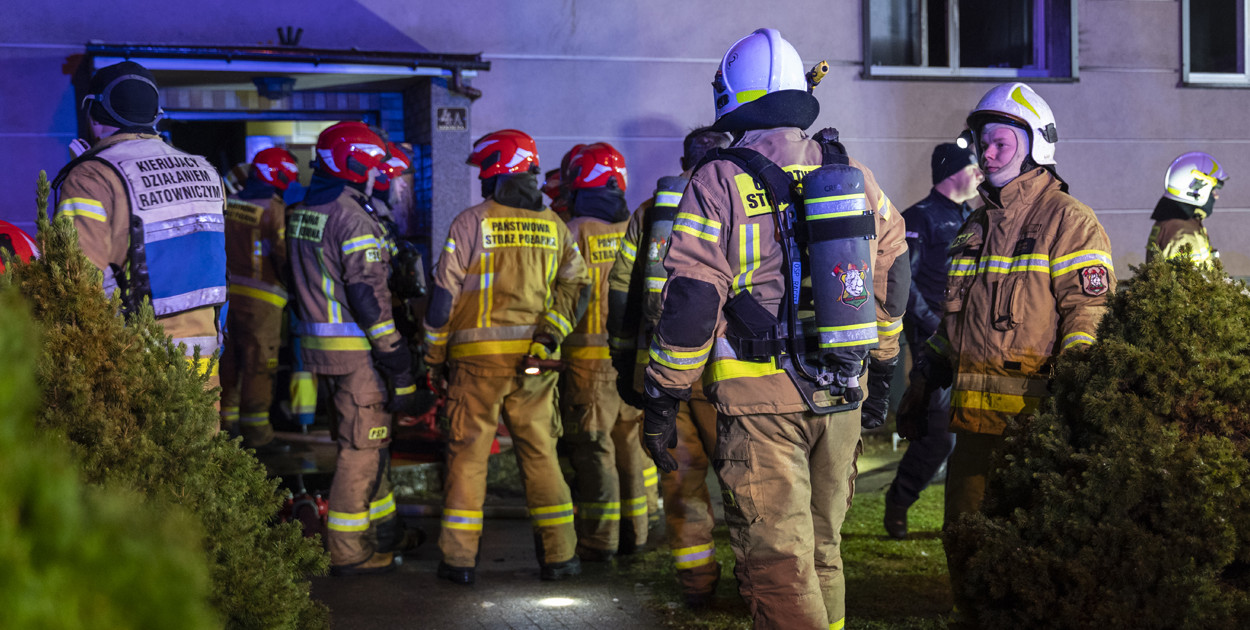 Strażacy przystąpili do akcji gaśniczej oraz ewakuowali osoby z pozostałych 5 mieszkań, w sumie 16 osób. Udzielili ponadto pomocy poszkodowanemu właścicielowi mieszkania oraz jednej osobie postronnej, która źle się poczuła pod wpływem całego zdarzenia. Decyzją przybyłych na miejsce ratowników medycznych te dwie osoby zostały zabrane do szpitala na dalsze badania.