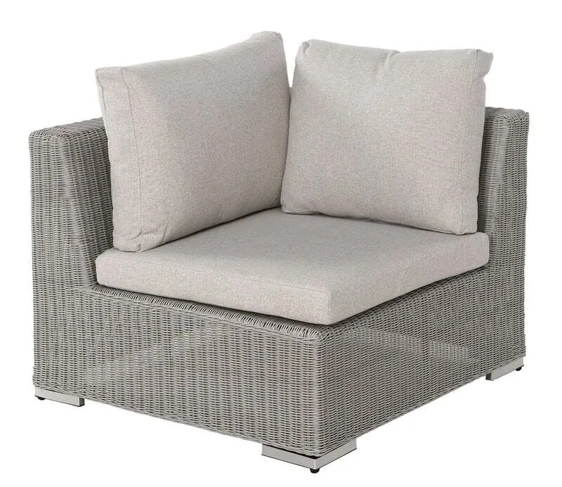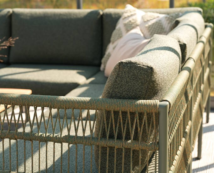 Na tarasie lub balkonie modułowe zestawy sprawdzają się zarówno w kompaktowych, jak i większych przestrzeniach. Możesz zestawić narożniki z pufami stolikiem kawowym, aby stworzyć wygodny kącik do relaksu przy kawie lub wieczornego spotkania. Lekka konstrukcja modułów ułatwia ich przesuwanie, dzięki czemu łatwo zmienisz układ w zależności od okazji – od codziennego wypoczynku po większe przyjęcia na świeżym powietrzu.