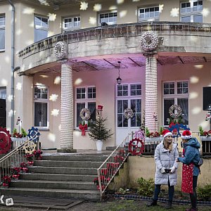 Warto zauważyć, że park był pięknie przystrojony świątecznymi ozdobami. Okazale prezentował się także dworek. To właśnie tutaj dzieci przyjmował św. Mikołaj wraz z panią Mikołajową.
