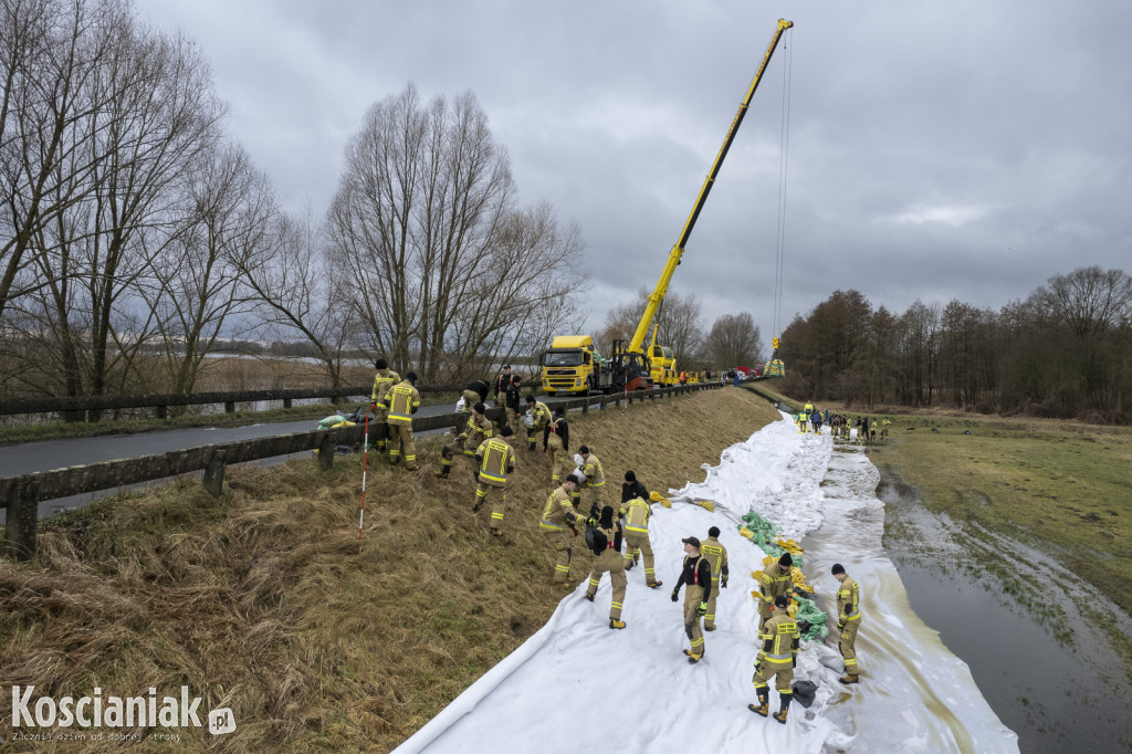 Od poniedziałku strażacy z całej Wielkopolski pracują przy umacnianiu zapory czołowej na zbiorniku retencyjnym Wonieść. Jeśli zapora puści, wystarczą cztery godziny na zalanie Kościana.