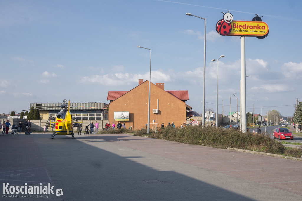 Helikopter wylądował w Kościanie na parkingu przy Biedronce zlokalizowanej obok ZUS-u w Wielką Sobotę. Pomoc została wezwana do pacjenta, który stracił przytomność. Powodem wezwania był brak wolnej karetki.